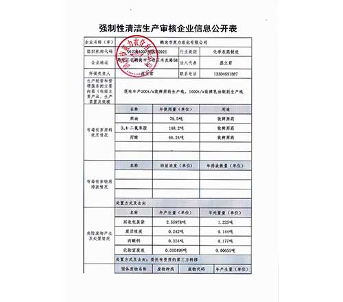 強制性清潔生產(chǎn)審核企業(yè)信息公開表